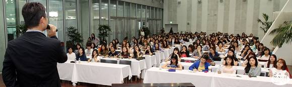 김범수 카카오톡 의장(창업자)이 4일 오후 서울 이화여자대학교 ECC 이삼봉홀에서 열린 특별강연에서 강연을 하고 있다.