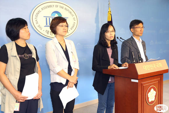 9일 오전, 국회 정론관에서 내란음모 및 국가보안법 위반 혐의로 구속된 홍순석 통합진보당 경기도당 부위원장, 이상호 경기진보연대 고문, 한동근 통합진보당 전 수원시위원장 등 가족들이 인권침해 규탄 기자회견을 갖고 있다.
