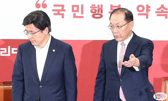 새누리당 황우여 대표(사진 오른쪽)가 9일 오후, 서울 여의도 국회에서 열린 법무부 당정협의회에 황교안 법무무장관과 함께 참석하고 있다.