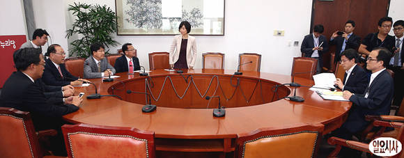 새누리당 황우여 대표(사진 왼쪽), 황교안 법무부장관 등이 참석한 가운데 9일 오후, 서울 여의도 국회에서 법무부 당정협의회가 열리고 있다.