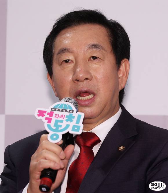 김성태 새누리당 의원이 9일 오후 서울 중구 순화동 호암아트홀에서 열린 JTBC 프로그램 '적과의 동침' 제작발표회에서 취재진의 질문에 답하고 있다.