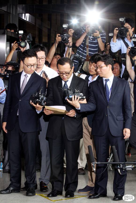 전두환 전 대통령의 장남인 재국씨가 10일 오후 서울 서초동 서울중앙지검에 미납 추징금 자진 납부계획서를 제출하기 위해 들어서며 사과문을 읽고 있다