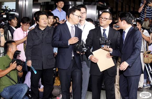 전두환 전 대통령의 장남인 재국씨가 10일 오후 서울 서초동 서울중앙지검에 미납 추징금 자진 납부계획서를 제출하기 위해 들어서고 있다.
