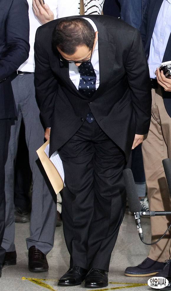 전두환 전 대통령의 장남인 재국씨가 10일 오후 서울 서초동 서울중앙지검에 미납 추징금 자진 납부계획서를 제출하기 위해 들어서며 고개 숙여 인사하고 있다.