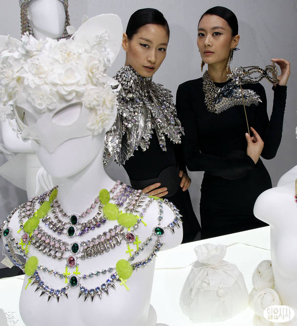 스와로브스키가 10일 서울 신사동 호림아트센터에서 동시대를 대표하는 디자이너와의 콜라보레이션을 통해 탄생한 다양한 주얼리를 선보이고 있다.