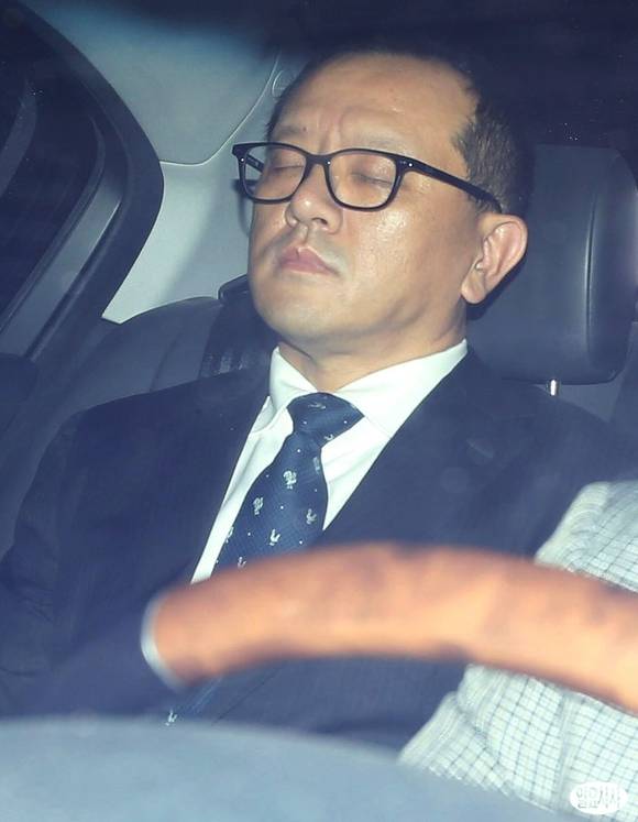 전두환 전 대통령의 장남인 재국씨가 10일 오후 서울 서초동 서울중앙지검에 미납 추징금 자진 납부계획서를 제출한 뒤 대기하던 차량에 탑승, 눈을 감고 생각에 잠겨 있다.