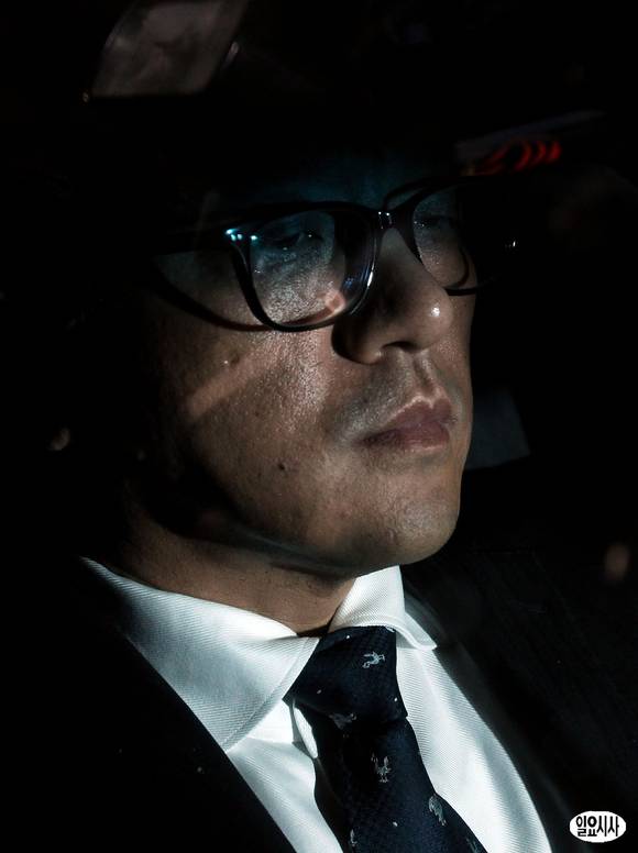 전두환 전 대통령의 장남인 재국씨가 10일 오후 서울 서초동 서울중앙지검에 미납 추징금 자진 납부계획서를 제출한 뒤 대기하던 차량에 탑승, 생각에 잠겨 있다.