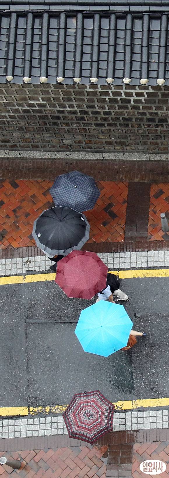 전국적으로 비가 내리는 11일 서울 덕수궁 돌담길에서 시민들이 우산을 쓰고 발걸음을 옮기고 있다.