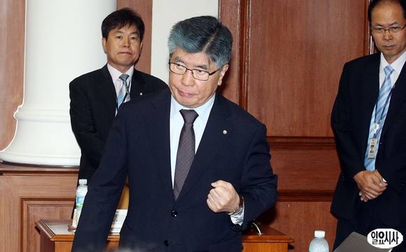김중수 한국은행 총재가 12일 오전 서울 중구 한국은행에서 열린 기준금리 인상 여부 등을 결정하기 위한 금융통화위원회의에 참석하고 있다.