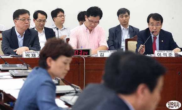 12일 오후 국회 예산결산특위 회의실에서 예산·재정개혁 특위 전체회의가 열리고 있는 가운데, 기획재정부 이석준 2차관(사진 오른쪽)이 의원들의 질의에 답변하고 있다.