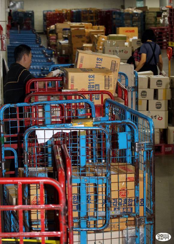 민족 최대의 명절 추석을 일주일 앞둔 12일 오후 서울 양천우체국 서서울물류센터에서 직원들이 센터로 도착한 선물소포를 배달지역별로 구분하고 있다.