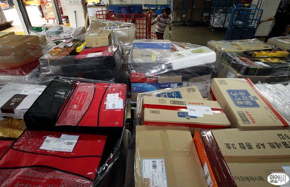 민족 최대의 명절 추석을 일주일 앞둔 12일 오후 서울 양천우체국 서서울물류센터에서 직원들이 센터로 도착한 선물소포를 배달지역별로 구분하고 있다.