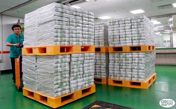 민족 대명절인 추석을 앞두고 13일 오전 서울 중구 한국은행에서 직원들이 기업과 가계의 자금 부족 해소를 위한 자금 방출 작업을 하고 있다.