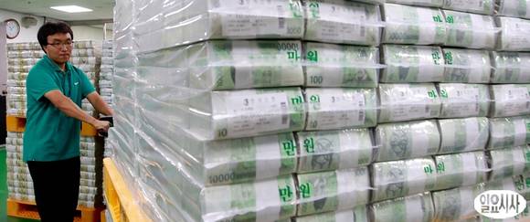 민족 대명절인 추석을 앞두고 13일 오전 서울 중구 한국은행에서 직원들이 기업과 가계의 자금 부족 해소를 위한 자금 방출 작업을 하고 있다.