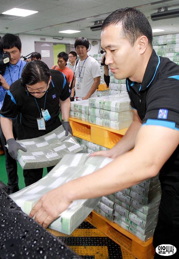 민족 대명절인 추석을 앞두고 13일 오전 서울 중구 한국은행에서 직원들이 기업과 가계의 자금 부족 해소를 위한 자금 방출 작업을 하고 있다.