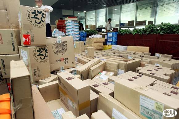 민족 대명절인 추석을 얼마 앞둔 13일 서울 여의도 국회 의원회관 로비 한 켠에 각종 선물 택배가 가득 쌓여 있다.