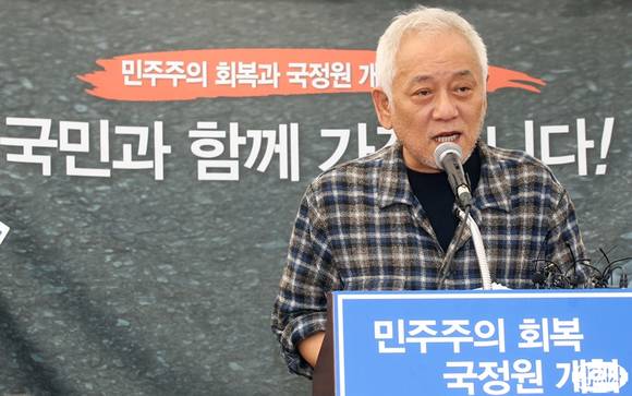 김한길 민주당 대표가 15일 오후 서울 서울시청 앞 광장 천막당사에서 긴급기자회견을 열고 박근혜 대통령과 여야대표의 3자회담에 응하겠다고 밝히고 있다.