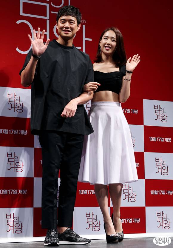 16일 오전 서울 CGV 압구정점에서 열린 영화 '밤의 여왕'(감독 김제영) 제작보고회에서 배우 천정명, 김민정이 포토타임을 갖고 있다.