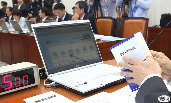 통합진보당 이석기, 김재연 의원에 대한 자격심사안을 논의하는 국회 윤리특별위원회가 16일, 서울 여의도 국회에서 열린 가운데 장윤석 특위위원장이 관련 책자를 확인하고 있다.