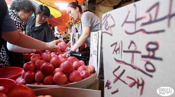 민족 대명절인 추석을 앞둔 16일 오후 서울 동대문구 제기동 경동시장에서 시민들이 제수용 과일을 구매하고 있다.