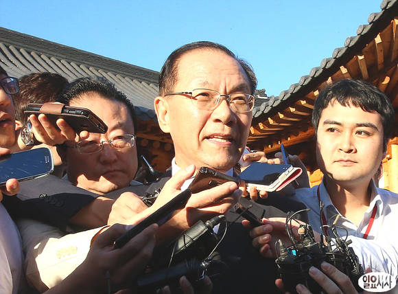 새누리당 황우여 대표가 16일 오후 국회 사랑재에서 박근혜 대통령, 김한길 민주당 대표와 3자 회담을 마친 후 취재진의 질문에 답하고 있다.