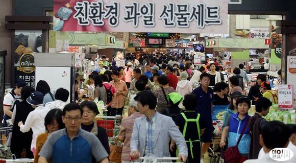 민족 대명절인 추석을 앞둔 17일 오후 서울 농협 하나로클럽 양재점에 제수용품을 구매하러 온 시민들로 북적이고 있다.