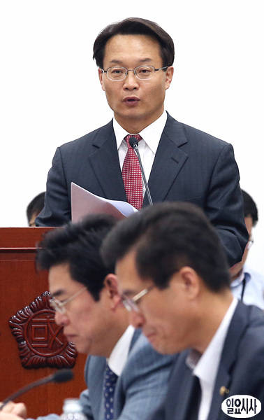 24일 오전, 조해진 국회 방송공정성특위 공영방송 지배구조 개선 소위 위원장(새누리당)이 서울 여의도 국회 특위 회의실에서 열린 전체회의에서 소위 논의 내용에 대해 보고하고 있다.