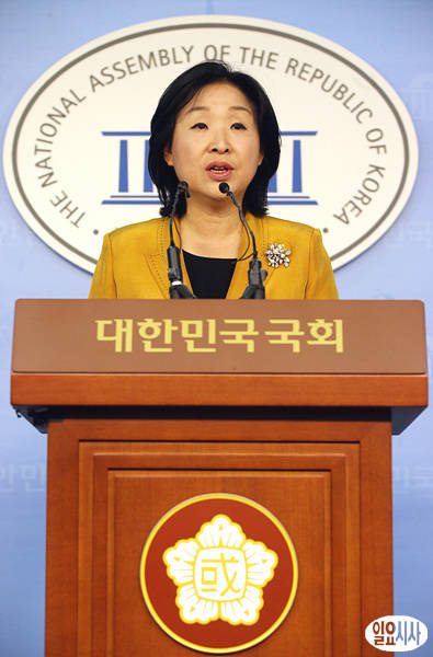 24일 오후, 심상정 진보정의당 원내대표가 박근혜 대통령의 기초연금 공약 파기와 관련해 국회 정론관에서 기자회견을 갖고 있다.