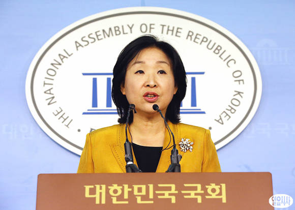 24일 오후, 심상정 진보정의당 원내대표가 박근혜 대통령의 기초연금 공약 파기와 관련해 국회 정론관에서 기자회견을 갖고 있다.