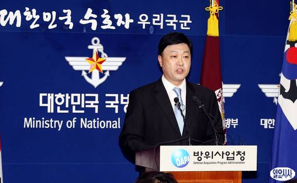 백윤형 방위사업청 대변인이 24일 오후 서울 용산구 국방부 브리핑실에서 차기전투기 선정을 위한 방위사업추진위원회 회의 결과에 대해 브리핑을 하고 있다. 방위사업청은 이날 김관진 국방부 장관 주재로 열린 방추위 회의에서 차기전투기 사업에 단독 후보로 오른 미국 보잉의 F-15SE에 대한 선정안을 심의해 부결했다.
