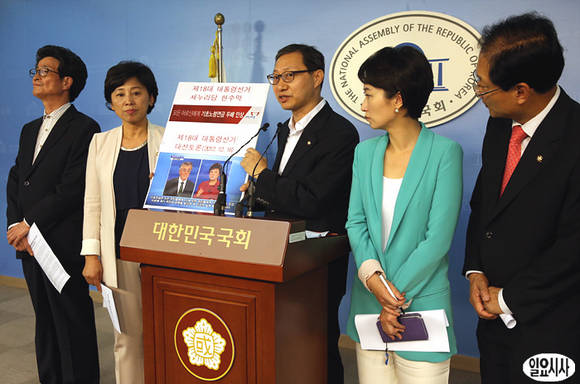 국회 보건복지위원회 소속 민주당 의원들이 25일 오전, 국회 정론관에서 현 정부의 복지공약 후퇴와 관련해 기자회견을 열고 있다. (왼쪽부터 이목희, 남윤인순, 김성주, 이언주 위원, 오제세 위원장)
