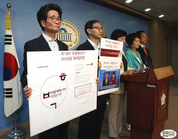오제세 위원장(사진 오른쪽), 이언주, 남윤인순 등 국회 보건복지위원회 소속 민주당 의원들이 25일 오전, 국회 정론관에서 현 정부의 복지공약 후퇴와 관련해 기자회견을 열고 있다.