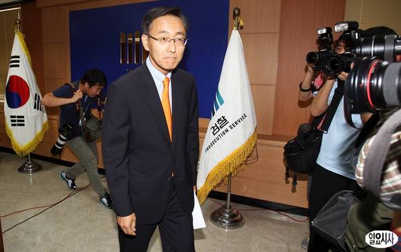 김수남 수원지검 검사장이 26일 오후 경기도 수원시 영통구 수원지검 대회실에서 이석기 통합진보당 의원의 내란음모 사건에 대한 중간수사 결과 발표를 마친 뒤 퇴장하고 있다.