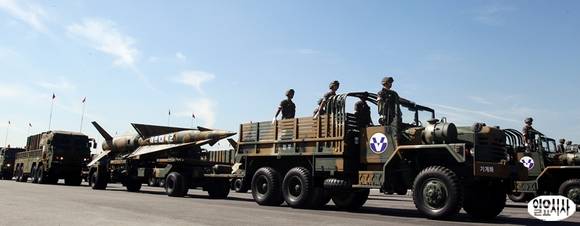 27일 오전 경기도 성남 서울공항에서 열린 건군 제65주년 국군의 날 기념행사 리허설에서 기계화부대 장병들이 분열 하고 있다.