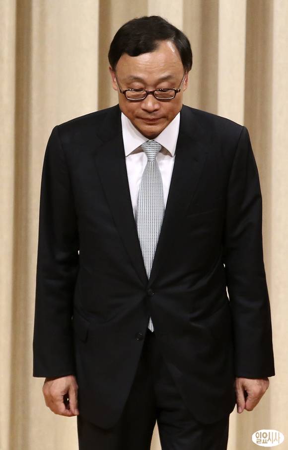 채동욱 검찰총장이 30일 오전 서울 서초동 대검찰청에서 열린 퇴임식에 참석, 고개 숙여 인사하고 있다.