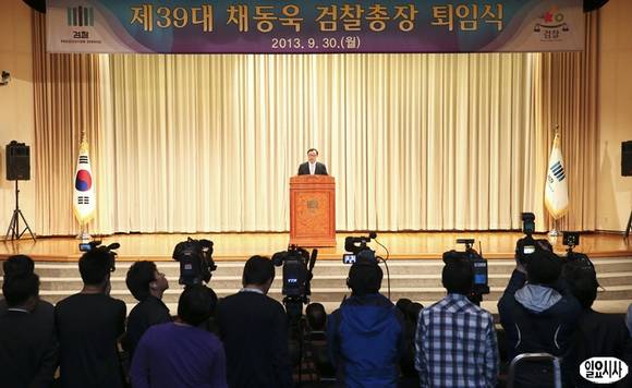 채동욱 검찰총장이 30일 오전 서울 서초동 대검찰청에서 열린 퇴임식에 참석, 퇴임사를 하고 있다.