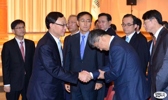 채동욱 검찰총장이 30일 오전 서울 서초동 대검찰청에서 열린 퇴임식을 마친 뒤 직원들과 인사를 나누고 있다.