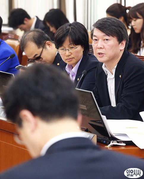 무소속 안철수 의원이 국회에서 열린 보건복지위 전체회의에 출석해 기초연금과 관련해 이영찬 보건복지부 차관에게 질의하고 있다.
