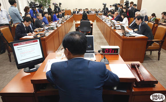 이 국회에서 열린 보건복지위 전체회의를 진행하고 있다.