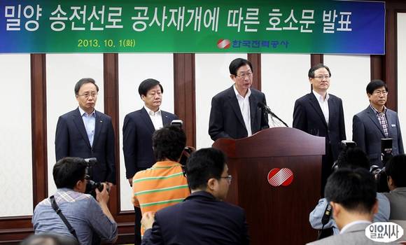 [포토] 한전, 밀양 송전탑 공사재개에 따른 호소문 발표