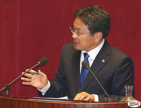 1일, 국회에서 열린 국회 긴급현안 질문에서 민주당 강기정 의원이 정홍원 국무총리를 상대로 긴급현안질문을 하고 있다.