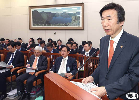 2일 오전, 윤병세 외교부 장관이 국회에서 열린 외교통일위원회 전체회의 직전, 업무보고를 하고 있다.