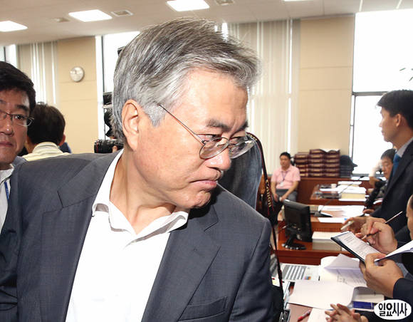 민주당 문재인 의원이 2일 국회에서 열린 기획재정위 전체회의 정회 직후 굳은 표정으로 회의장을 빠져나가고 있다.