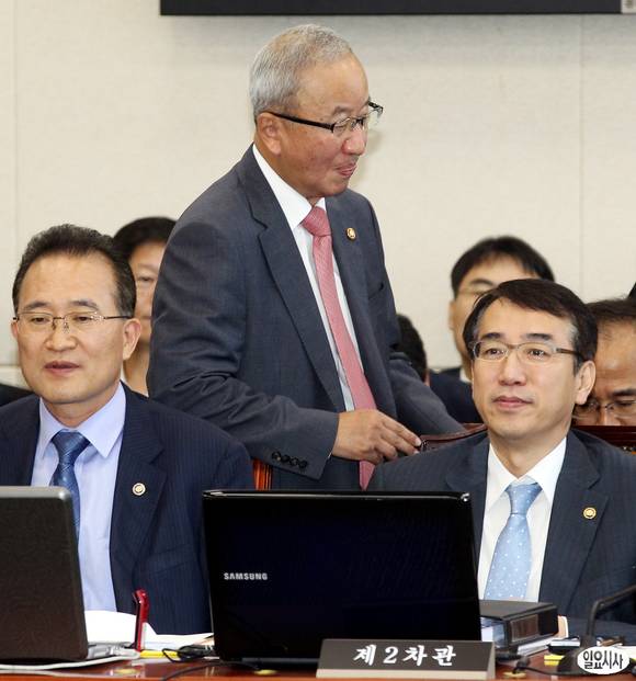 현오석 경제부총리 겸 기획재정부 장관(가운데)이 4일 오전 서울 여의도 국회에서 열린 기획재정위원회 전체회의에 참석하고 있다.