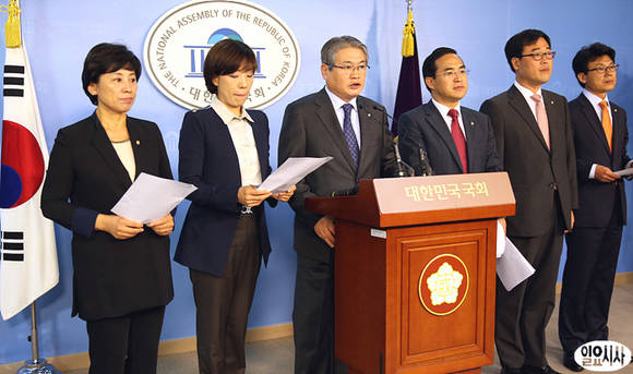 7일 오전, 국회 정론관에서 민주당 초선 의원들이 기자회견을 열어 손학규 상임고문의 재보선 경기 화성갑 출마를 촉구기자회견을 갖고 있다. (왼쪽부터 남인순, 배재정, 김용익, 박홍근, 김기식, 진성준 의원)