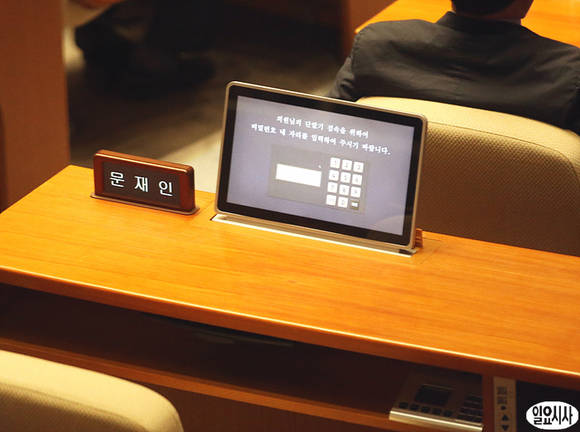 7일 오전 국회 본회의장에서 본회의가 열리기 직전, 문재인 의원석이 텅 비어 있다. 문 의원은 최근 대화록 실종과 관련해 검찰 조사를 앞두고 있으며, 새누리당 등으로부터 정계은퇴 압박까지 받고 있다.