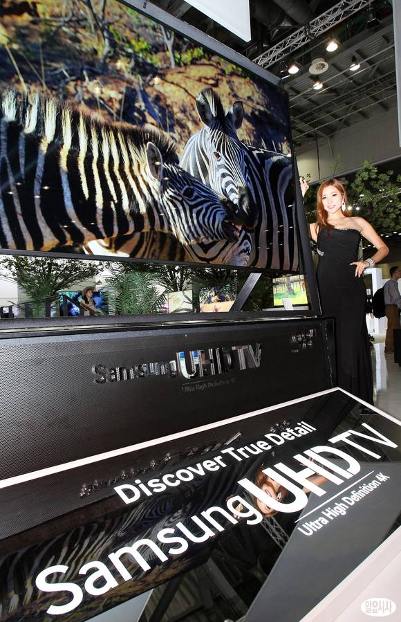 '2013 전자정보통신산업대전'이 7일 경기도 일산 킨텍스에서 열리고 있는 가운데 삼성전자 부스의 모델이 UHD TV를 선보이고 있다.