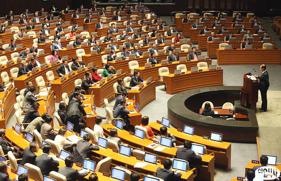 황우여 새누리당 대표가 7일 오전, 국회 본회의장에서 열린 본회의에서 교섭단체 대표연설을 하고 있다.