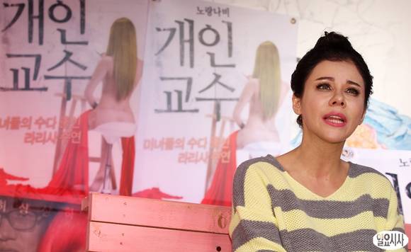 모델 겸 연극배우 라리사가 7일 오후 서울 명륜동 피카소 소극장에서 긴급 기자회견을 열고 결혼 및 이혼 사실과 더불어 최근 협박을 당하고 있는 억울함에 대한 심경을 밝히고 있다.