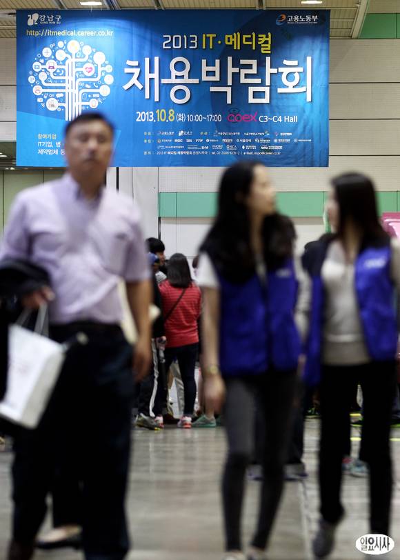 8일 서울 삼성동 코엑스에서 열린 '2013 IT·메디컬 채용박람회'를 찾은 구직자들이 부스를 둘러보고 있다.